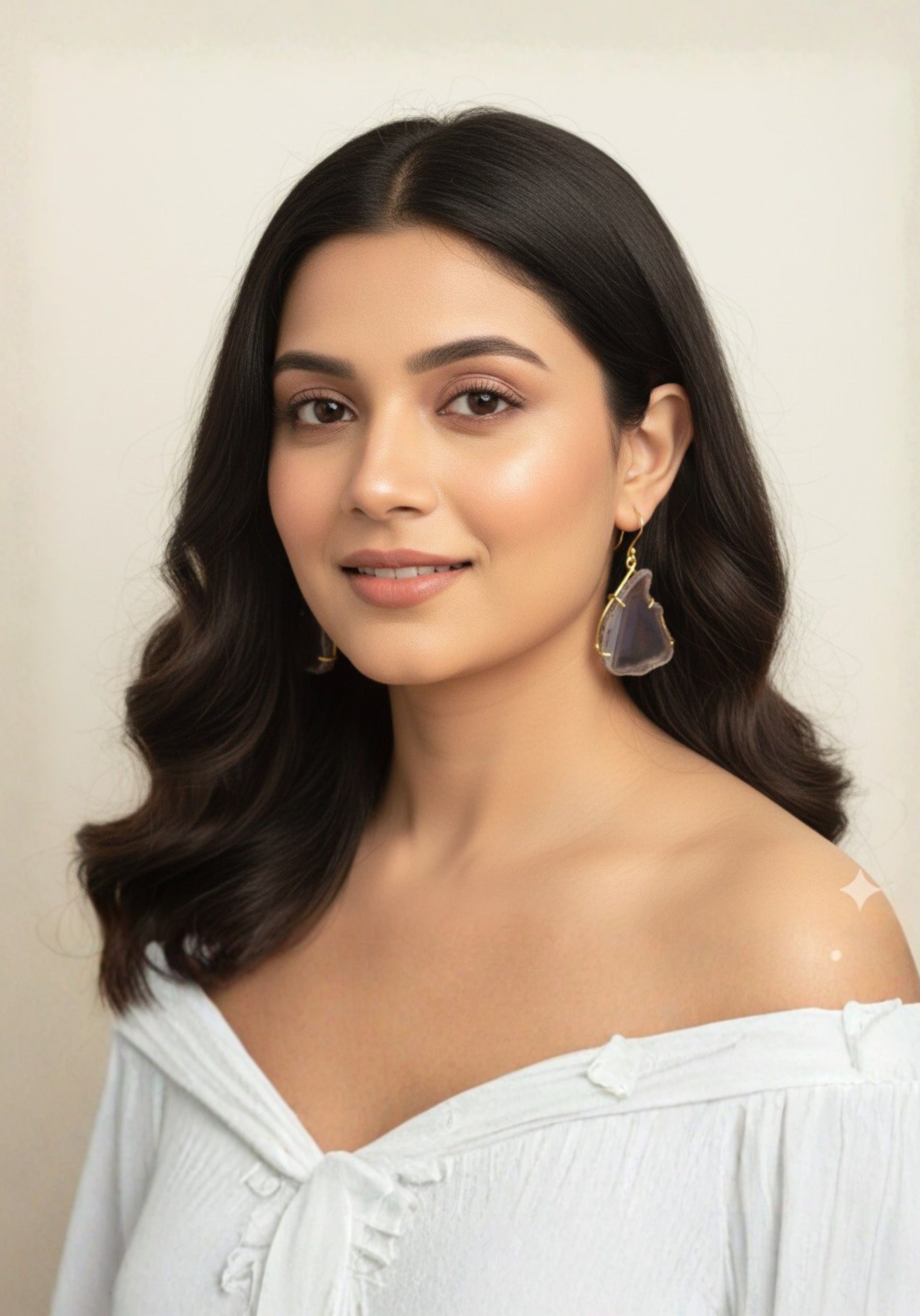 These 18K gold plated brass earrings feature natural rough druze gem stones for a unique and elegant touch. Expertly crafted, these earrings are perfect for adding a touch of sophistication to any outfit. Enjoy the natural beauty and shine of these one-of-a-kind earrings.