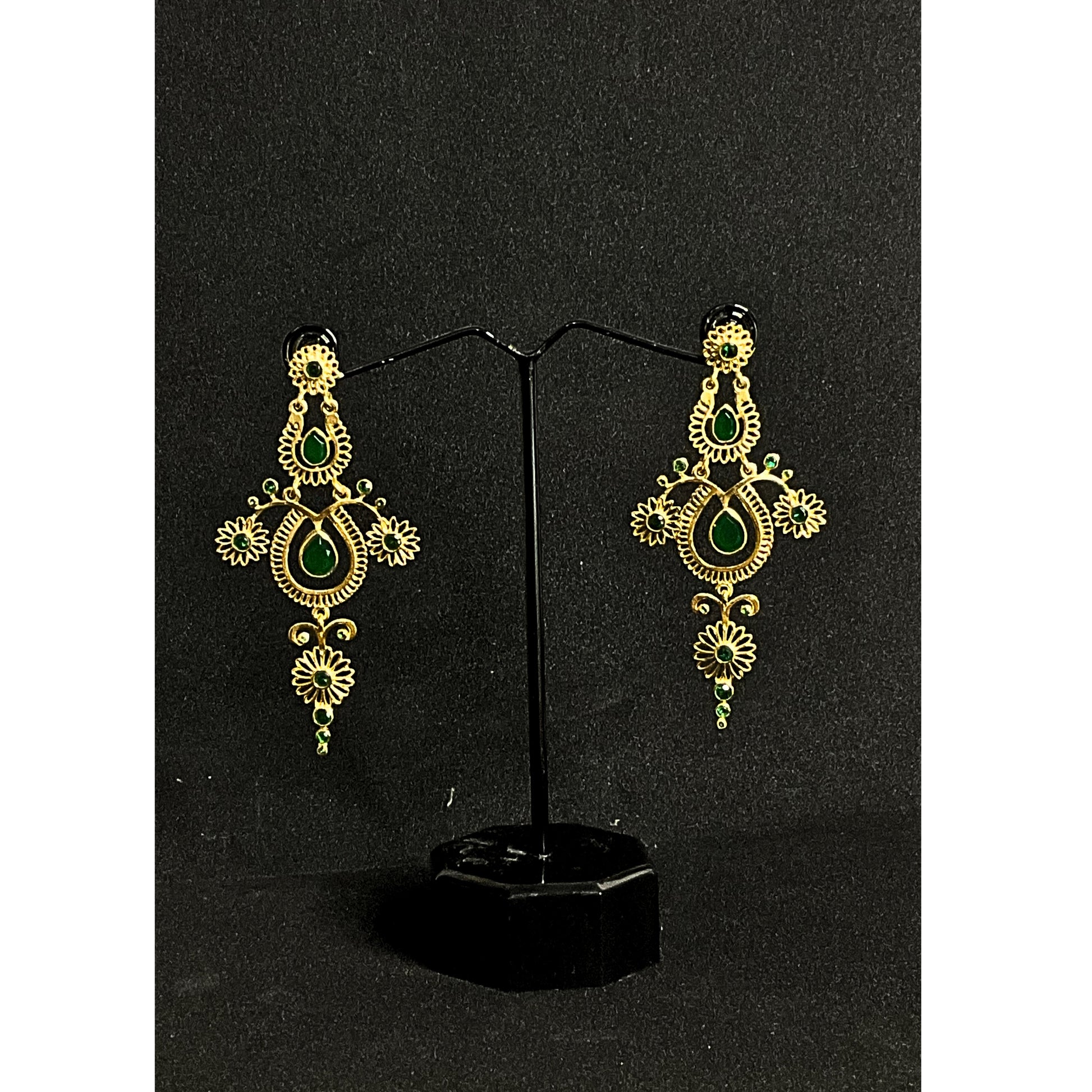 Flora Fantasy Earrings are the perfect addition to your party look. The long, lightweight design makes them comfortable to wear all night, while the green gemstone adds a touch of elegance. Crafted by skilled designers, these earrings are a must-have for any floral lover.