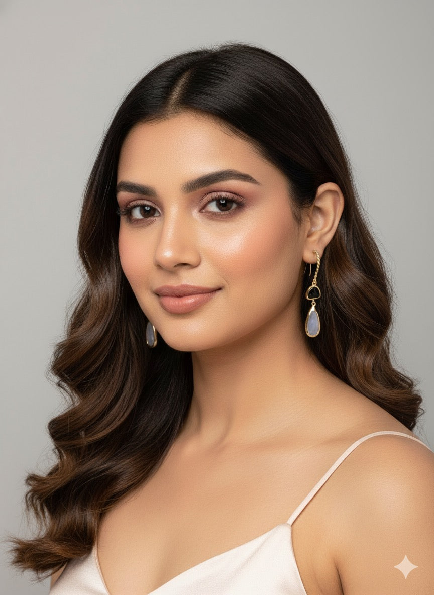 These elegant Grey Agate Jet Black Stone Earrings are crafted with gold-plated details. The grey agate and jet black stones add a touch of sophistication to any outfit. Enjoy high-quality materials and timeless style with these statement earrings.