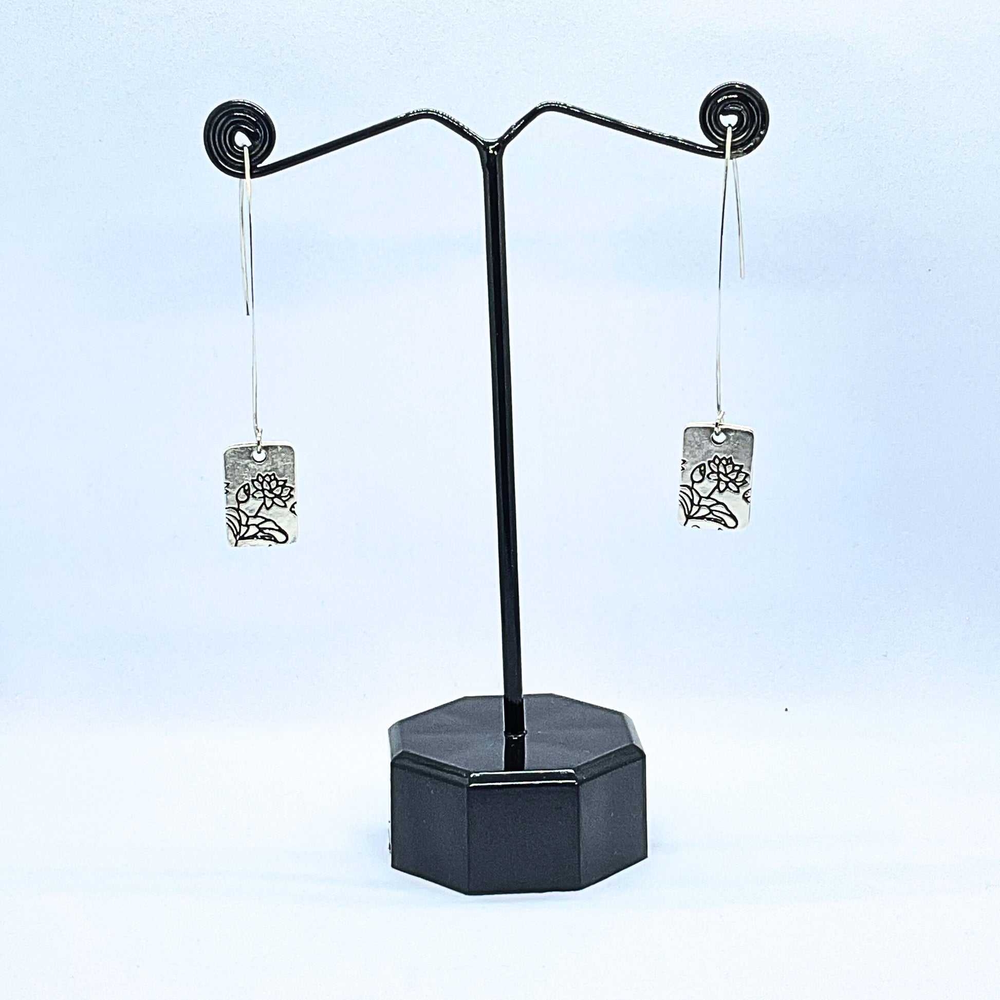 Antique silver small rectangle charms with silver-plated brass long earrings showcase sleek, elongated rectangular charms in an antiqued finish. Suspended from silver-plated brass hooks, these earrings offer a refined and contemporary look with a vintage touch. The combination of the long, elegant design and intricate antique charm makes them ideal for adding a sophisticated statement to any outfit.