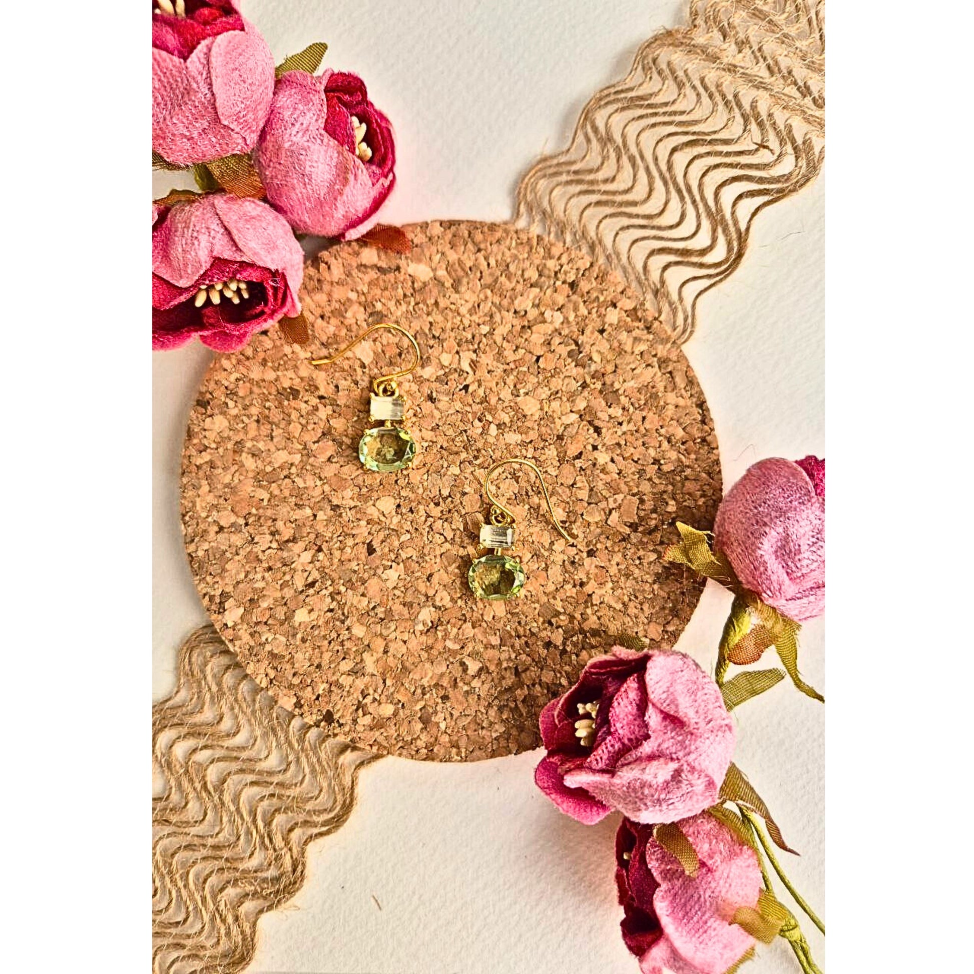 Add a touch of elegance and freshness to your look with these stunning gold-plated sterling silver drop earrings, featuring a beautifully faceted mint green stone. Designed for effortless sophistication, these earrings offer a perfect blend of timeless charm and modern style.
